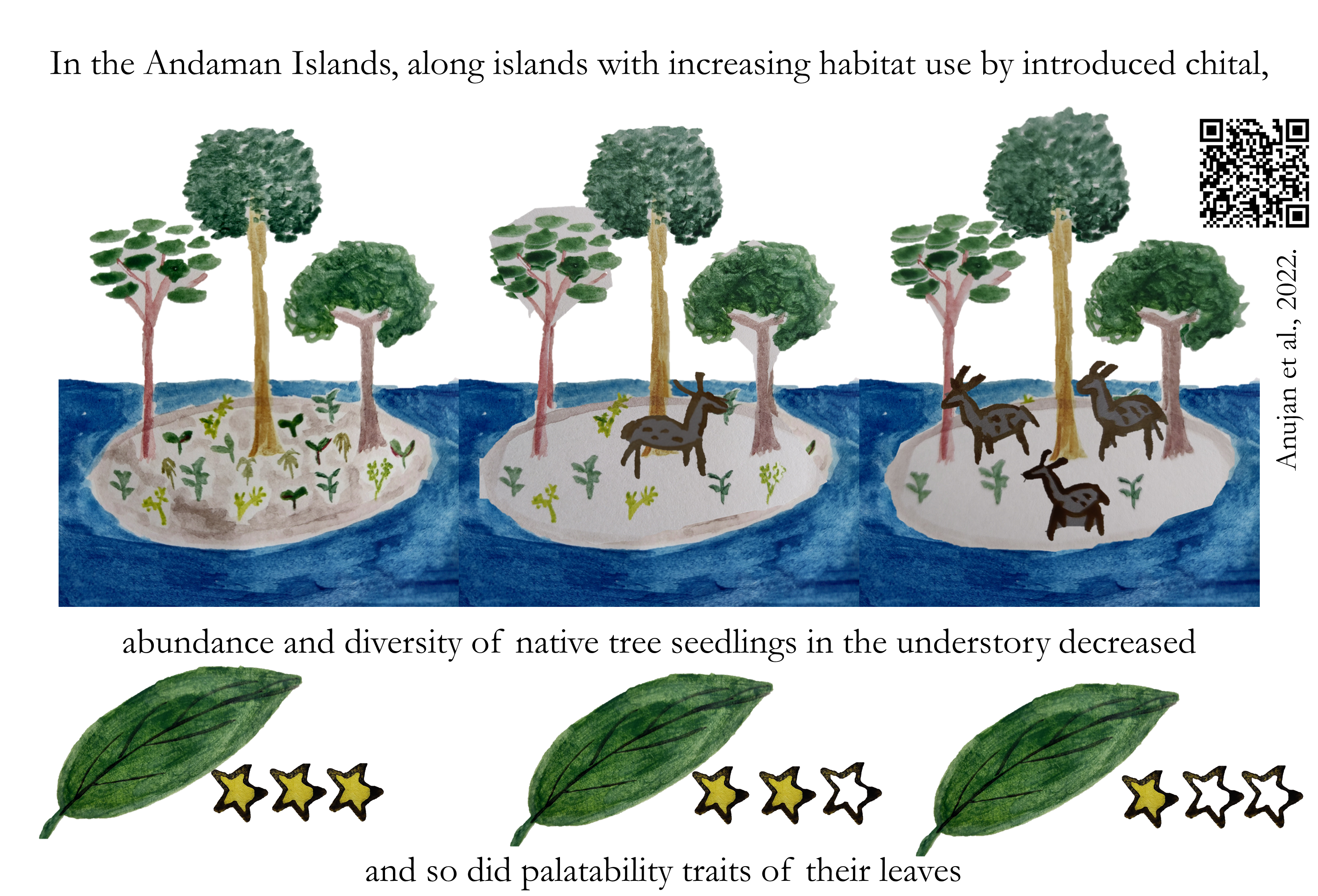 - Anujan, K., Ratnam, J., & Sankaran, M. (2022). Chronic browsing by an introduced mammalian herbivore in a tropical island alters species composition and functional traits of forest understory plant communities. Biotropica, 54(5), 1248–1258. https://doi.org/10.1111/btp.13149